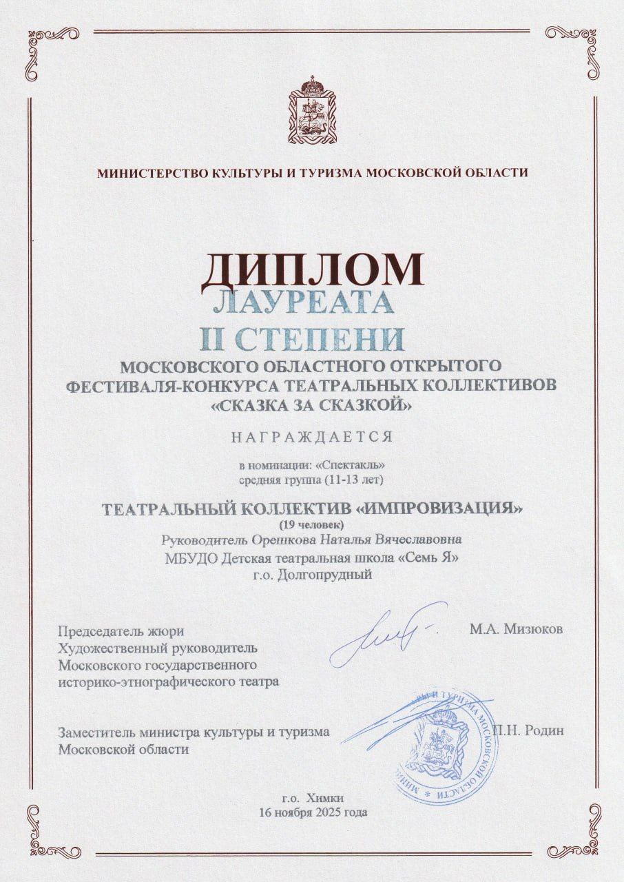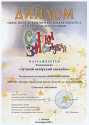 Группа «Импровизация» со спектаклем «Незнайка» завоевала звание Лауреата II степени, а также получила специальную номинацию «Лучший актёрский ансамбль»!