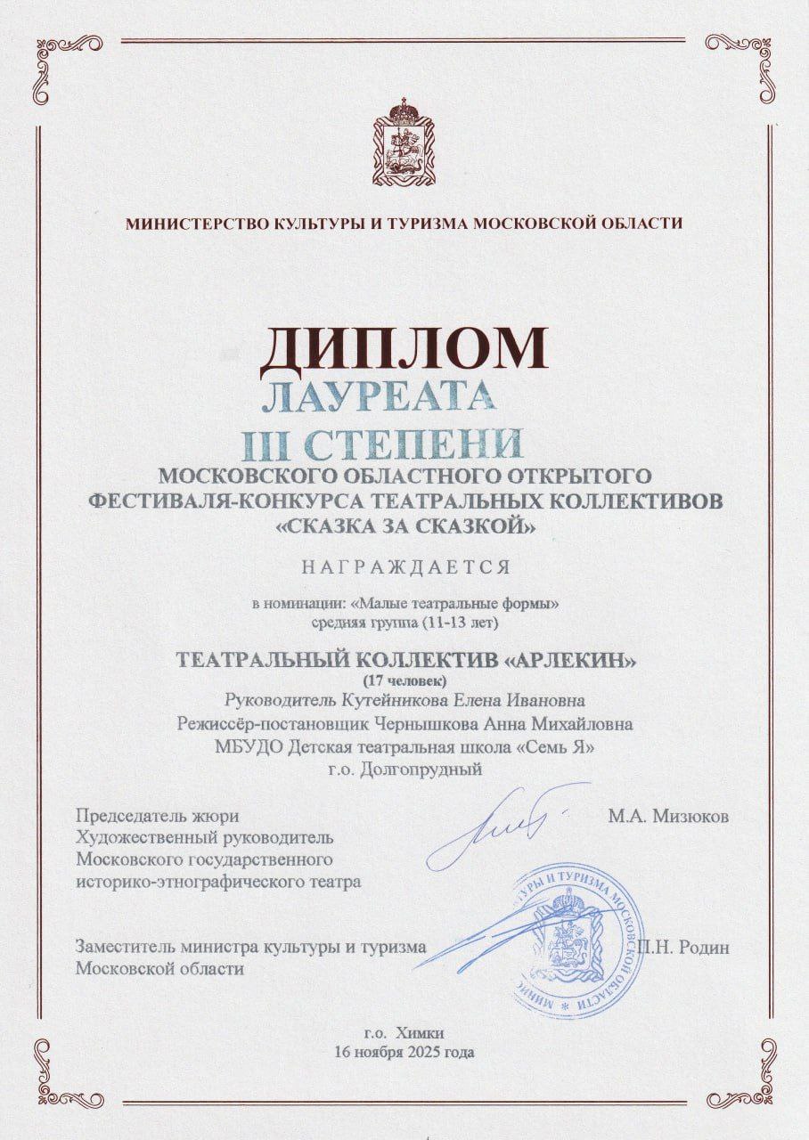 Группа «Арлекин» с спектаклем «Сказка о золотом петушке» стала Лауреатом III степени!
