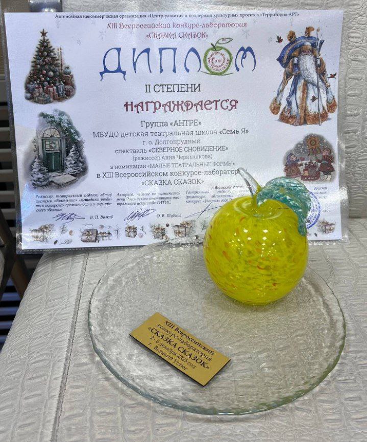 По итогам Всероссийского конкурса "Сказка сказок" группа «Антре» со спектаклем " Северное сноведение" завоевала звание ДИПЛОМАНТА II СТЕПЕНИ в номинации "Малые театральные формы"!