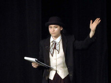 На сцену выходит директор театра в белом цилиндре и собирается объявлять первое выступление.