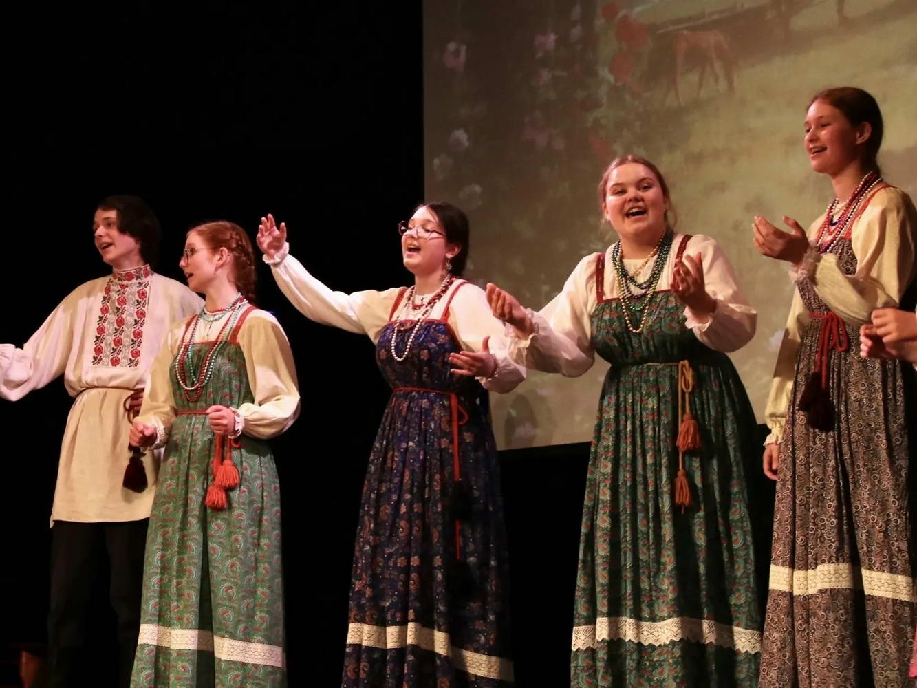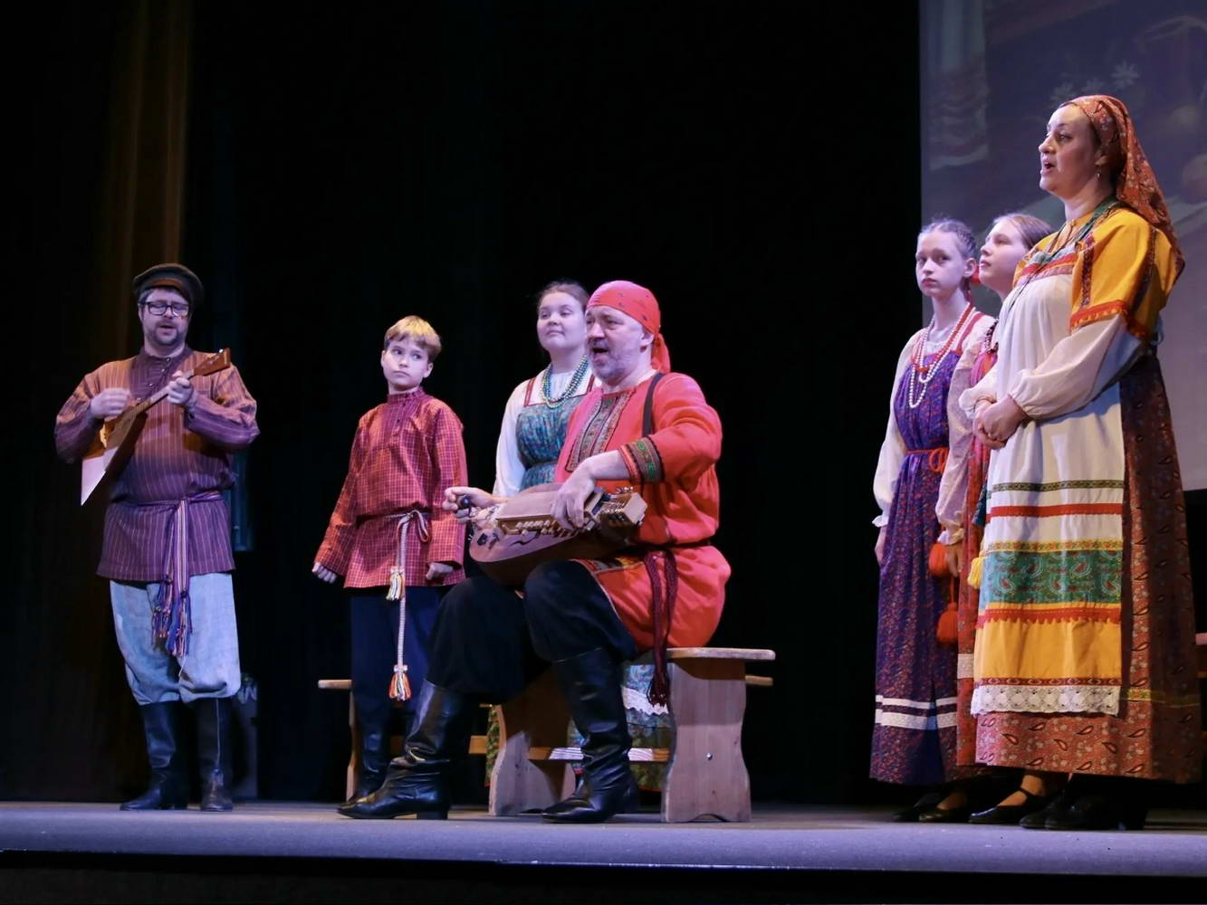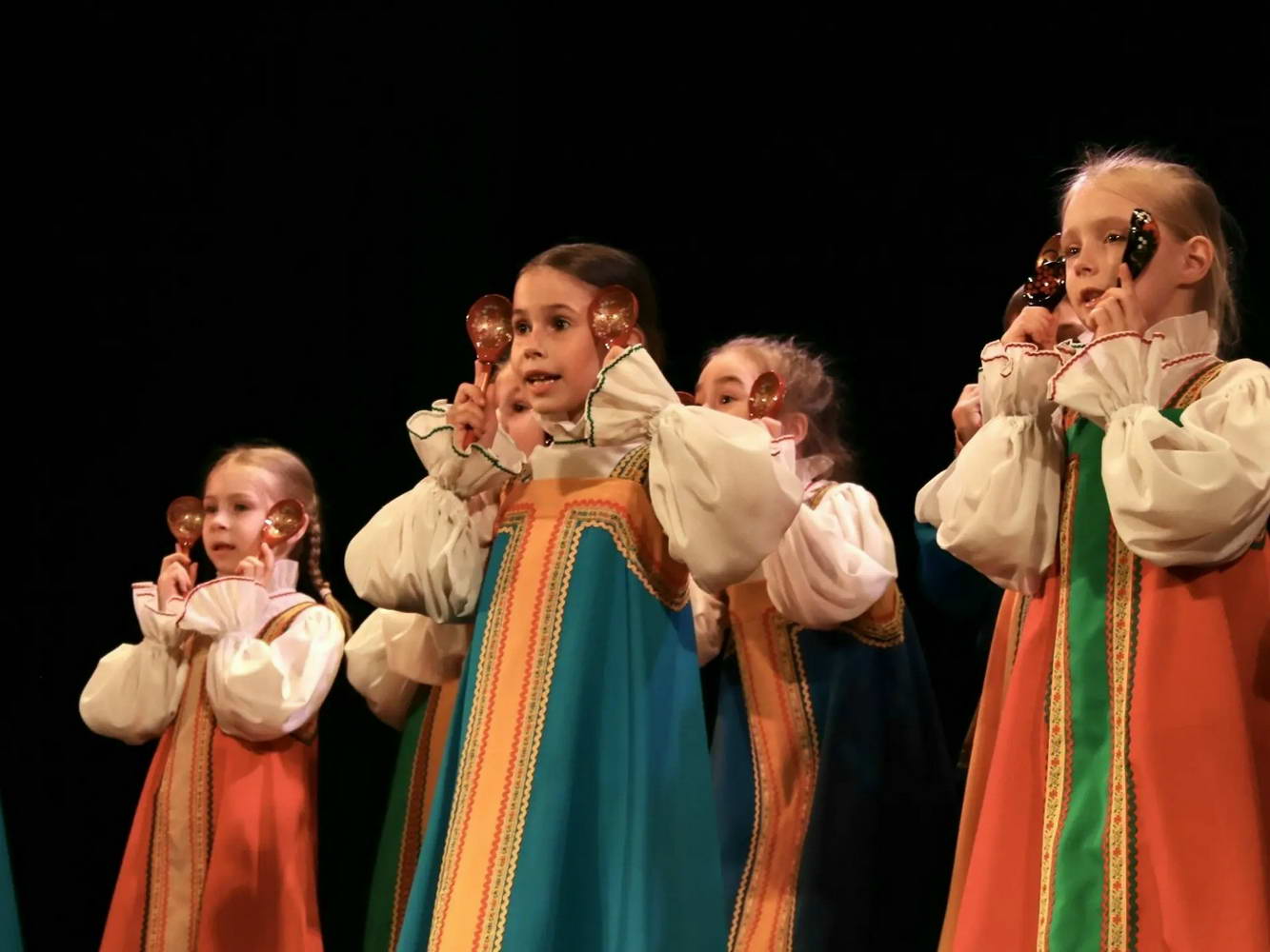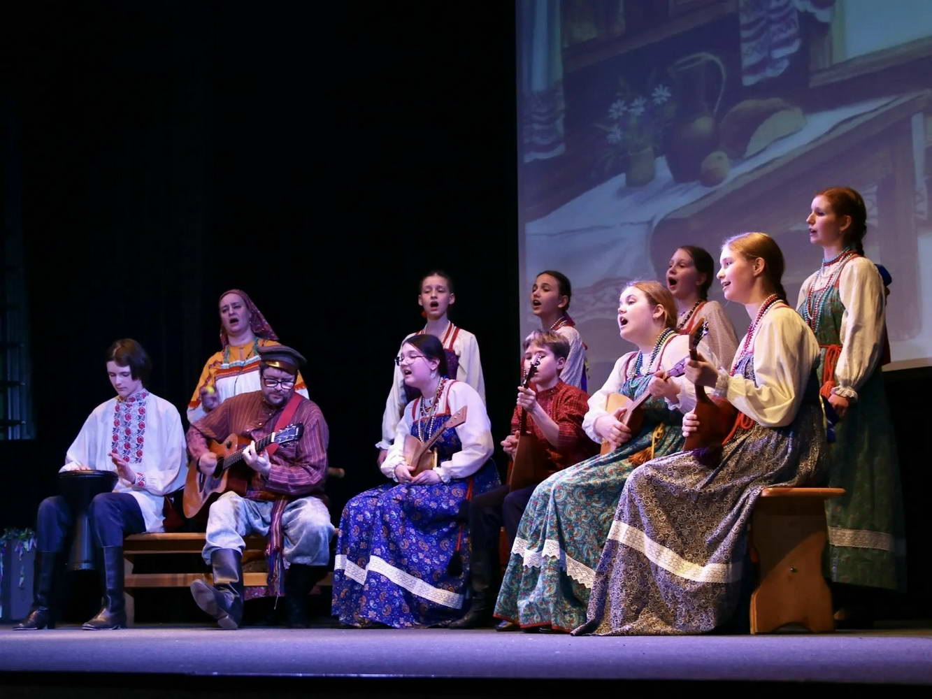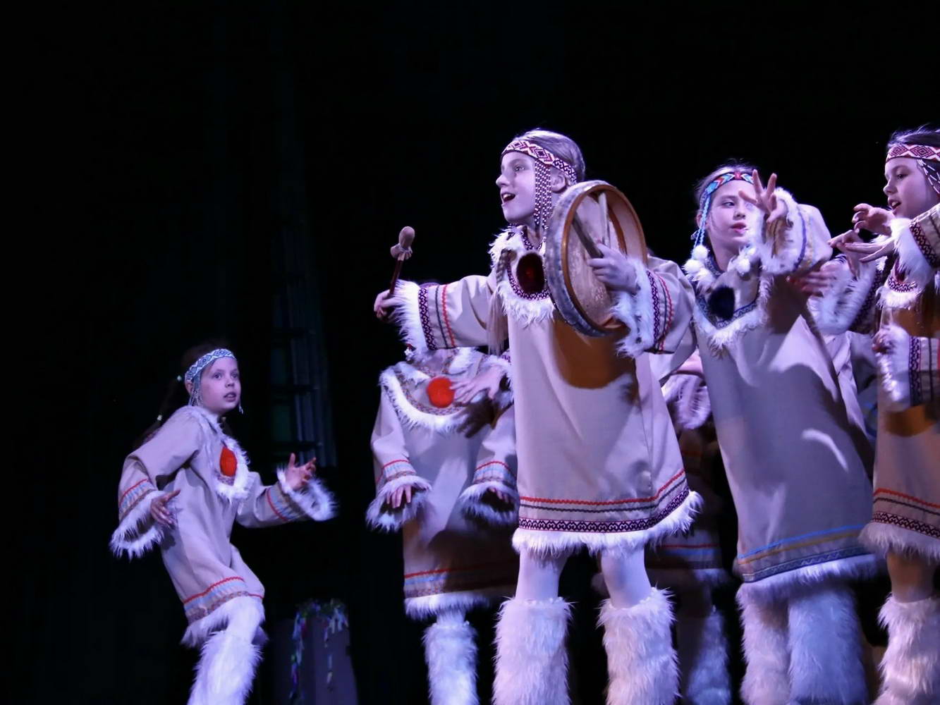 На сцене творилось настоящее волшебство! Наши юные «Театралики» и ученики групп «Антре», «Фантазия» и «Миниатюра» вместе с ребятами из ансамбля «Перезвоны» и нашими педагогами исполняли духовные стихи, весенние заклички и самые разные народные песни. Зал даже заворожило чукотское сказание «Северное сияние»!