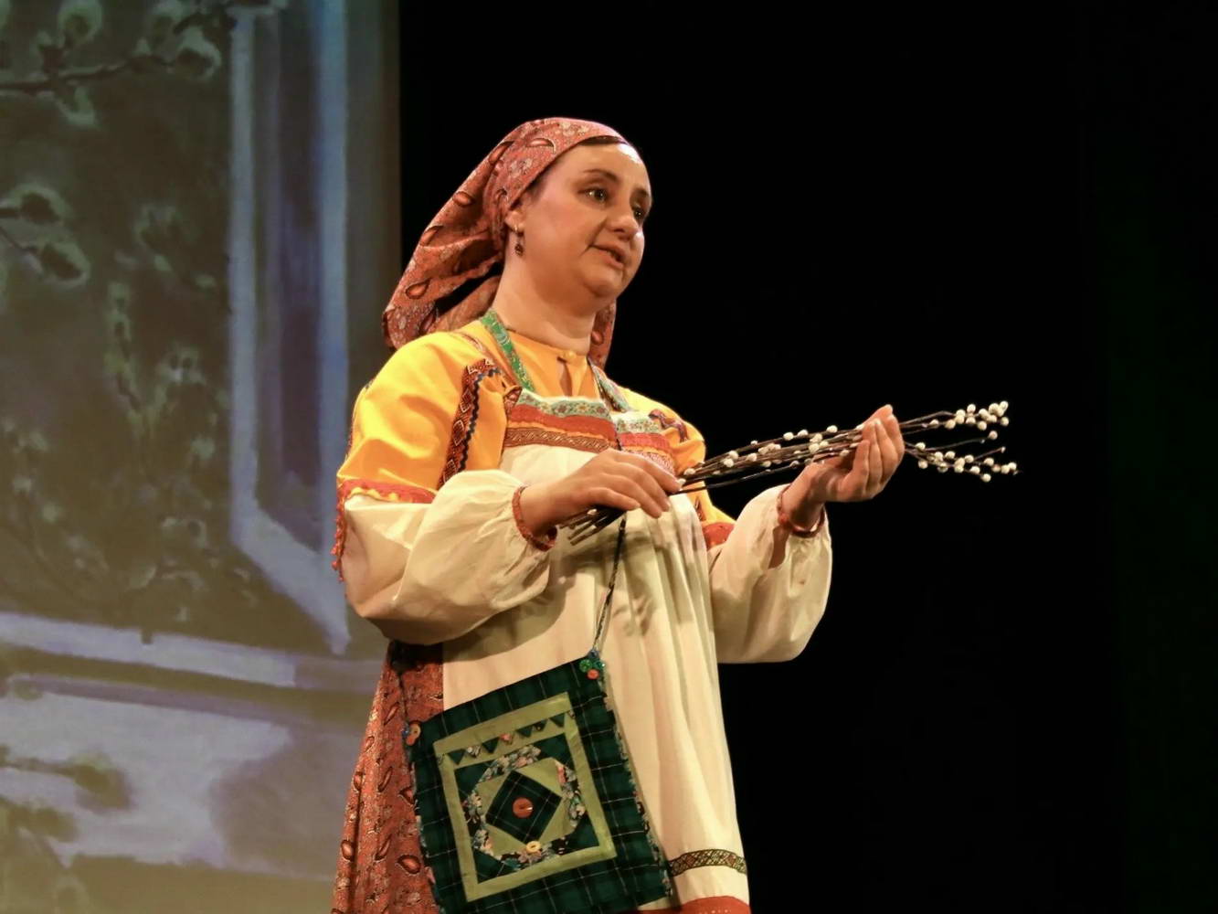 16 апреля в зрительном зале «Семьи» было по-особенному тепло и светло. Наш пасхальный концерт обернулся настоящим путешествием по фольклорным традициям: от Сретения и Благовещения до Вербного воскресенья и Пасхи.